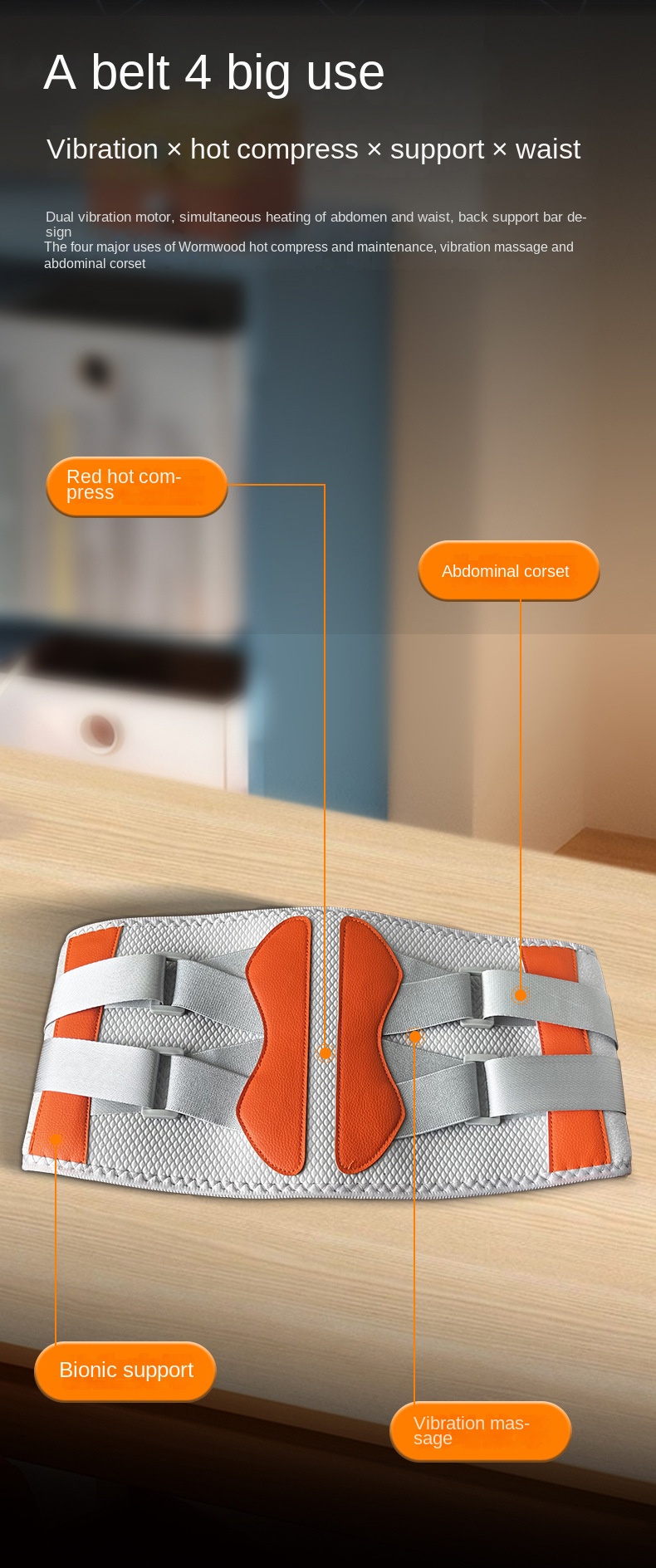 Relieve lower-back tension with infrared warmth and gentle massage. The belt soothes muscles, eases stiffness, and enhances comfort during work, travel, or recovery.